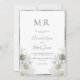 White Lilly Botanical Monogram Elegant bröllop Inbjudningar