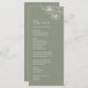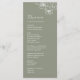 White line art flowers on a sage green background. With your names in an elegant calligraphic script on the backside.