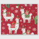 Ett festive mönster som innehåller glada laxar som adorberats med färgstarka gåvor och helgdag. Laman ställs mot en pulserande röd bakgrund, som är sammanflätad med snöflingor och kaktusväxter. Varje Llama sportar ett lekfullt uttryck.