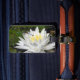 Vacker vit Lotus-blomma (vatten lily) och turligt blå Dragonfly