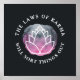 När vi kommer ihåg att vi är eviga varelser och kan se livet ur ett evigt perspektiv, ser vi sanningen bakom allt, inklusive lagen om orsak och verkan. Konceptet karma handlar om konsekvenserna av våra handlingar. Ett annat sätt att säga det är "vi skördar det vi såger". Det motiverande citat som jag har visat på den här poster är "Karmas lagar kommer att reda ut sak" i vit text runt en lotus-blommar på en vattenfärgssfär i rosa-lila. Bakgrunden till denna kudde är en elegant, svart färg.