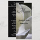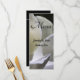 Vit Magnolia Bröllop Dining Menu designad med en elegant White Magnolia Flower på svart bakgrund. Texten innehåller: Menu, Bride and Groom's First Namn och Bröllop Date. Den omvända texten innehåller: Dina appetizer-, Retur- och Dessert-markeringar. Om du vill anpassa dig infogar du bara menyinformationen i vår enkla mall och ersätter exempeltexten.