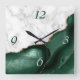White Marble Emerald Grönt Agate Guld Glitter Fyrkantig Klocka