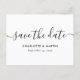 White Modern Script Wedding Save The Date Postcard Meddelande Vykort