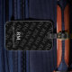 White Monogram Initialer Grått Mönster Black Bagagebricka