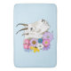 En sidoprofil porträtt av en vit bergskatt. Vild blommor finns överallt i bergsgeten, som alla dras i en tatuering stil i en blå bakgrund