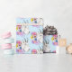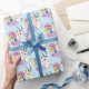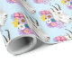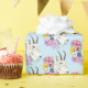 En sidoprofil porträtt av en vit bergskatt. Vild blommor finns överallt i bergsgeten som dras i en tatuering stil i en blå bakgrund