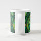 White mug featuring a vibrant, intricate pattern of green tropical leaves with black curves and geometric shapes, evoking a lush, natural feel.