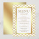 Menykort för elegant med faux-guld-folie gräns mot guld Quatrefoil-bakgrund.