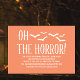 Skaffa redo för en skrämmande roligt kväll med den här djärva inbjudan från Halloween fest, som innehåller den lekande frasen "Oh the Horror" i pografi, komplett med flygande fladdermus och öre flair. Den här inbjudan-strejkan ställer in mot en sjudande orange med skarp, vit textdesign och perfekten mellan skrynklig och coola. Perfekt för galningar och sprit-temerade sammankomster, Halloween-cocktail party eller vuxna-only firande, gör den enkla utformningen och den moderna utformningen att det är enkelt att visa dina party-detaljer med stil. Ett måste för skrämmande bror!