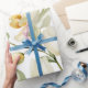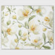 Watercolor vintage wrapping paper with white orchid, yellow accents, flora, and greenery. Perfect for spring, summer, or autumn gifts for girls, boho lovers, or elegant nature-themed occasions.