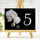 Den här söt White Orchid på Black Bordsnummer är ett tillägg till din förlovningsfest, möhippa eller bröllopsmottagning. Dessa bordsnummer för blomsterodling i anpassningsbar har ett fotografi av blommigten med vita blommar av halvblommor eller blommor på stjälken med svart bakgrund.