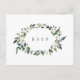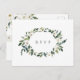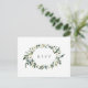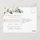 Vår vattenfärgssamling i White Peony blommigt bröllop har delikatmålat vattenfärgsgrej, grönt botaniskt blad och vita och elfenbensblommor. Anpassa det här matchande vykortet för OSA med önskat svarsdatum och målval eller inmatningsval.