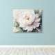 Fintvätt av vita peonpejler bildar en blomma med blomning, accentuerad med antydningar om grönt och mjuk rosa i tunga Impasto-färgstift