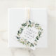 Vår vattenfärgssamling i White Peony blommigt bröllop har delikatmålat vattenfärgsgrej, grönt botaniskt blad och vita och elfenbensblommor. Anpassa dessa fyrkantiga favärden med namn och bröllop-datum, gått med med en dekorativ skriptaccent.