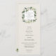 Vår vattenfärgssamling i White Peony blommigt bröllop har delikatmålat vattenfärgsgrej, grönt botaniskt blad och vita och elfenbensblommor. Anpassa framsidan och baksidan av dessa bröllopsprogram med information om ceremonin och bröllopsfest.