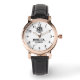 Refined, elegant, and timeless — this white and gold personalized watch is a masterpiece of minimalist luxury. The pure white dial with bold black numerals and a classic monogram crest radiates sophistication and confidence. Framed by a rose gold bezel and paired with a white crocodile-textured leather strap, this timepiece blends modern simplicity with personalized style.
