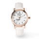 personalized watch, white dial, rose gold watch, elegant wristwatch, white leather strap, monogram gift, luxury accessory, custom initials, timeless fashion, minimalist design