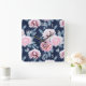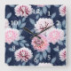 White, pink flowers on dark blue. Fyrkantig Klocka
