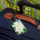 Dubbla bagagetagg med ett foto av vita plumeriablommor som tagits på Big Island of Hawaii. Den här produkten är en mall. Klicka på "Anpassa den här mallen" om du vill lägga till din kontaktinformation.