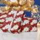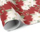 Backa dina gåvor den här julhelgen med elegantens vita pappra julomslag. Utformningen illustrerar en vit poinsettia mönster accentuerad med sage grönt-snurrar på en vacker röd bakgrund.