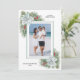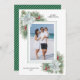 Vita poinsetter, bär och fjäder gräs grenar visar ditt favoritfoto med namn och hälsning i chic. Använda ANY FÄRG för ram kring fotot och färg för bakgrunden på framsidan och baksidan. **Lägg till fler foton eller detaljer på baksidan. Välj Projektionsyta för högsta pappra och HD-kvalitet för bästa utskriftskvalitet.