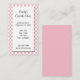 A custom business card template with script and friendly serif letters for your name, address, days and hours and more info on a clean white background with a drop shadow against a white polka dot pattern on red. Change fonts, add your own logo and more, even save your design for later.