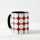 Rader med fetstilt vitt polka dots på röd bakgrund bildar snyggtens geometriska mönster. Digitalt skapat bild. Copyright © 2013 Claire E. Skinner. Alla rättigheter förbehållna.