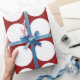 Rader med fetstilt vitt polka dots på röd bakgrund bildar snyggtens geometriska mönster. Digitalt skapat bild. Copyright © 2013 Claire E. Skinner. Alla rättigheter förbehållna.