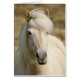 En mycket söt vit isländsk ponny som ställer upp för kameran.