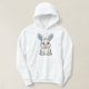 Vector illustration of a smiling white bunny with large, sweet eyes, long, blue ears, and a pink nose, in a cartoon style, on a black background. Suitable as a logo or mascot.