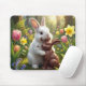 A charming white rabbit in a vibrant spring flower garden, savoring a delicious chocolate Easter bunny in the warm sunlight