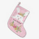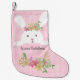 White Rabbit Rosa Guld Poinsettia Blommigt Liten Julstrumpa