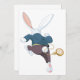 En vit kanin med ryggen vände sig bort. Den här designen ser ut att vara verkligen i dessa inbjudningar