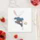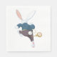 En vit kanin med ryggen vände sig bort. Den här designen ser ut att vara effektiv på dessa Pappra servetter