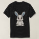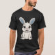 Vector illustration of a smiling white bunny with large, sweet eyes, long, blue ears, and a pink nose, in a cartoon style, on a black background. Suitable as a logo or mascot.