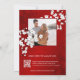 Vit körsbärsbädd grenar och två fjärilar med röd skuggande bakgrund. Japanska stil bröllopsinbjudan. Med en skannerbar fyrkantig kod för din bröllop-webbplats och ett anpassningsbar-foto på baksidan.