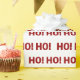 Mönster i "Ho Ho Ho" i rött på vit bakgrund.