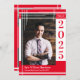 Fira student med det här tillkännagivandet från Vita och röda skolan färg studenten med modern plaid-design! Den enkla moderna utformningen med ren typografi är sofistikerad och elegant med ren design. Underbar för en högskoleexamen, åttonde klass eller högskoleexamen!