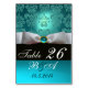 WHITE RIBBON BLUE TURQUASE BLACK DAMASK MONOGRAM BORDSNUMMER