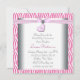 Rosa flickors rosa zebra-inbjudningar i första heligan. Lägg till informationen i fram- och bakgrunden genom att lägga till händelseinformation, teckensnitt stil, storlek & färg och ordalydelse.
