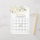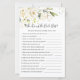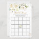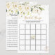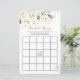 Vattenfärgade vita krämfärgade rosor, guldblommor och gröna blad Bröllopsduschspel - Dubbelsidigt kort - Två spel i ett! Bröllopsbingospel på framsidan av kortet och Vem vet mest om Bruden på baksidan.