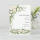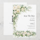 Lovely watercolor white roses, cream florals with greenery wedding save the date card invitation with editable lines on the front and a QR code for you to enter your wedding website on the back of the card. Classic and Traditional