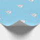 A simple design of white sailing boats on a blue background. This nautical theme sailboat / yacht pattern is also available on tissue paper and wrapping paper sheets in various sizes.