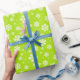 White Snöflingor på Grönt Winter Mönster Presentpapper