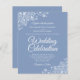 Dessa prisvärda, budgetvänliga bröllopsinbjudningar är perfektens val för klass, stil och skönhet i en budget. Konstruktionen har vita snöre-friluftsblad i blommigten i hörnen på en dammig färgad- eller periwinkle-bakgrund. I typografin ingår finare-skriptbokstäver för ett stil som är enkelt och elegant vid gång. Underbart sätt att inbjudan dina vänner och din familj till i din glädje på din speciella dag utan att bryta banken.