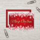 White snowflakes on a red background with Merry Christmas text in golden colors.