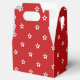 Vita konturer av stjärnor på röd bakgrund på rutor för ljussken.