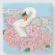 En vit svan omgiven av rosa blommor i blå botten