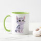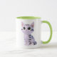 Cute White Tabby Kitten Porcelain Look, Kawaii 3D Cat Illustration with Green Eyes on White
